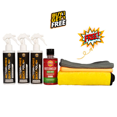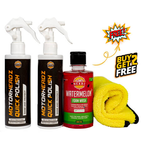 Say goodbye to expensive detailing supplies once and for all! Motor Headz Quick Polish is the most advanced 3-in-1 Ceramic Waterless Wash, Coat and Shine Formula for automobiles, vehicles, boats, and other surfaces. One single coat is all you need to ensure your car and motorcycle is protected and ready for anything that comes its way..